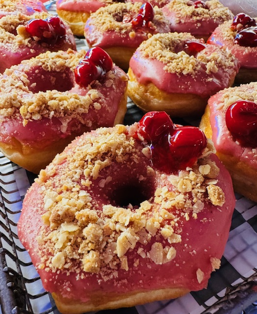 Cherry Crisp Donut. Cherry icing & brown sugar oatmeal butter crisp.
