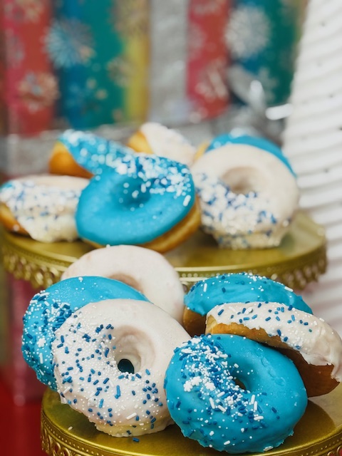 12 Blue, White and Silver Glittery donuts sure to make all ooo and ahhh! Great option for your holiday parties!